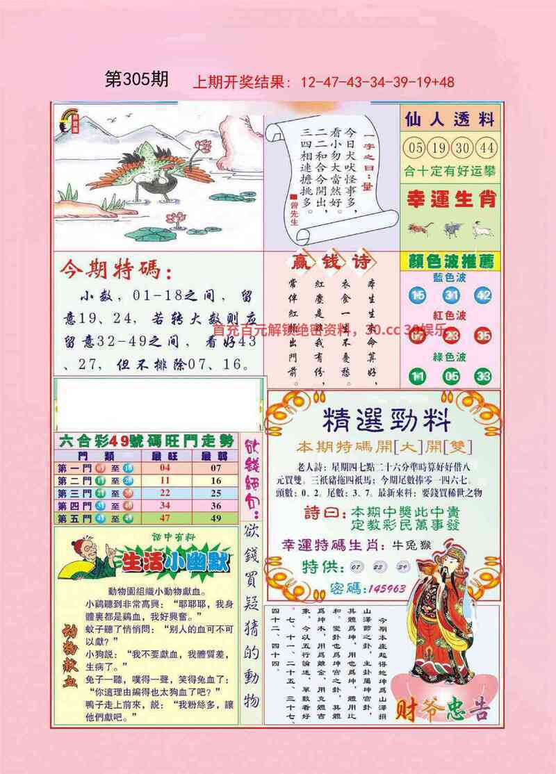 | 307期:平特一肖【羊羊羊】开:發00中 |
